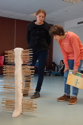 Un autre atelier leur a permis de découvrir les méthodes de construction de façon ludique : après la visite du site, il s’agit pour eux de se repérer dans l’espace, de jouer et manipuler les mesures, les matériaux, les outils et découvrir les métiers de la construction au Moyen Âge. C’est aussi un moyen de réutiliser du vocabulaire acquis en cours.